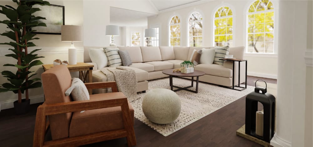 Consider slipcovers when furnishing your farmhouse living room.